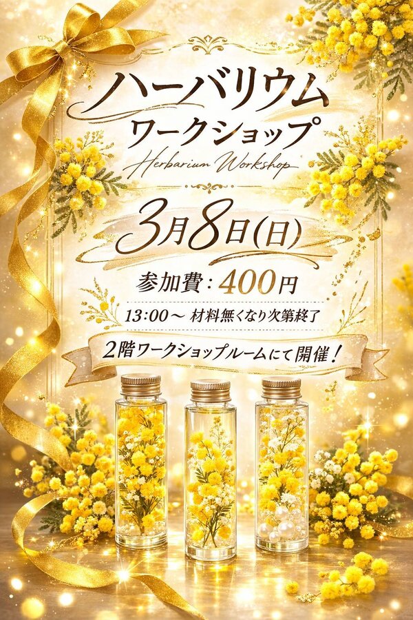 ◆企画展最終日をかざる、「ミモザのハーバリウムづくり」